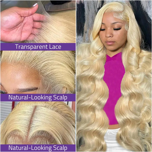 #613 Body Wave Human Hair Lace Wig 13x4 and 13x6 Transparent Frontal Lace Honey Blond Wig 40 Inch Pre-plucked Brazilian Hair Wig