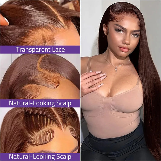Chocolate Brown Bone Straight Front Lace Wig 13x6 Transparent Lace Frontal Wig 13x4 HD Lace Pre-Plucked Brazilian Human Hair Wig