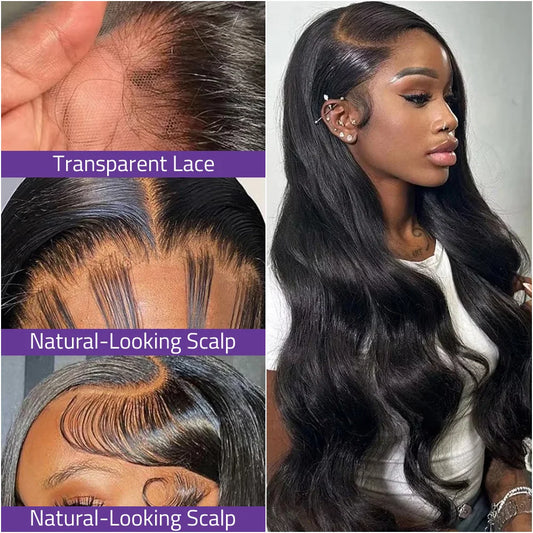 Body Wave Brazilian Human Hair Wigs 13x4 and 13x6 Transparent Lace 40 Inch Wigs 360 HD Full Lace Natural Color Wigs 200% Density