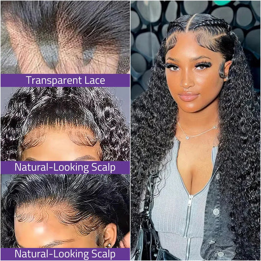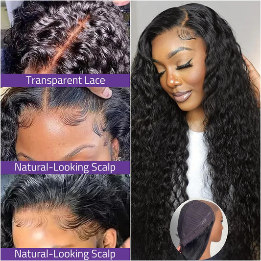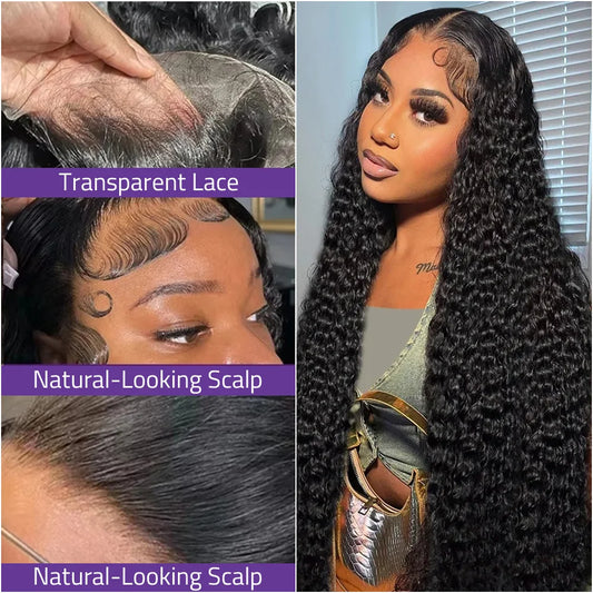 40 Inch Deep Wave Lace Wig 13x6 HD Lace Front Human Hair Wig 5x5 Glueless Lace 200 Density Black Curly Wig and 360 Full Lace Wig
