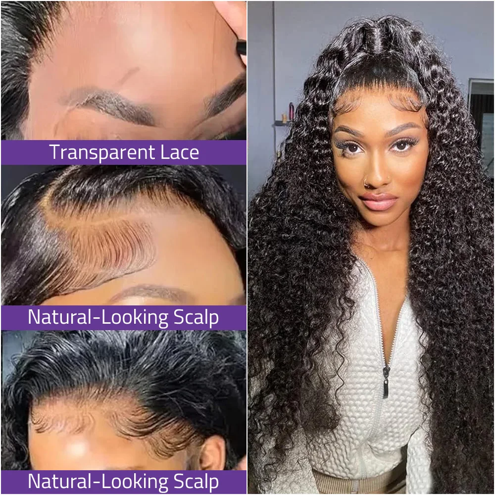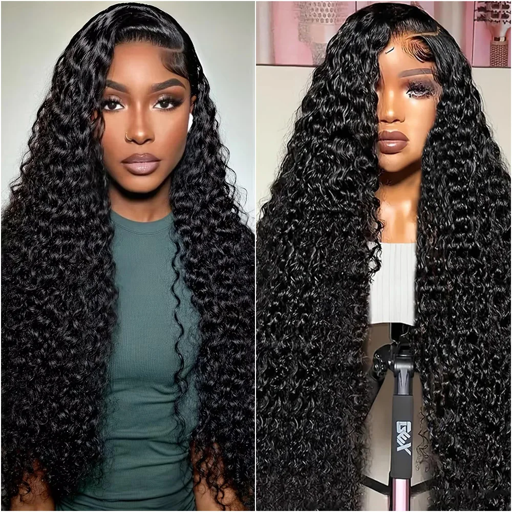 220 Density Black Deep Wave Wig 13x4 HD Lace Frontal Brazilian Human Hair Wig Curly Wave 13x6 Lace Frontal 40 Inch Wig For Women