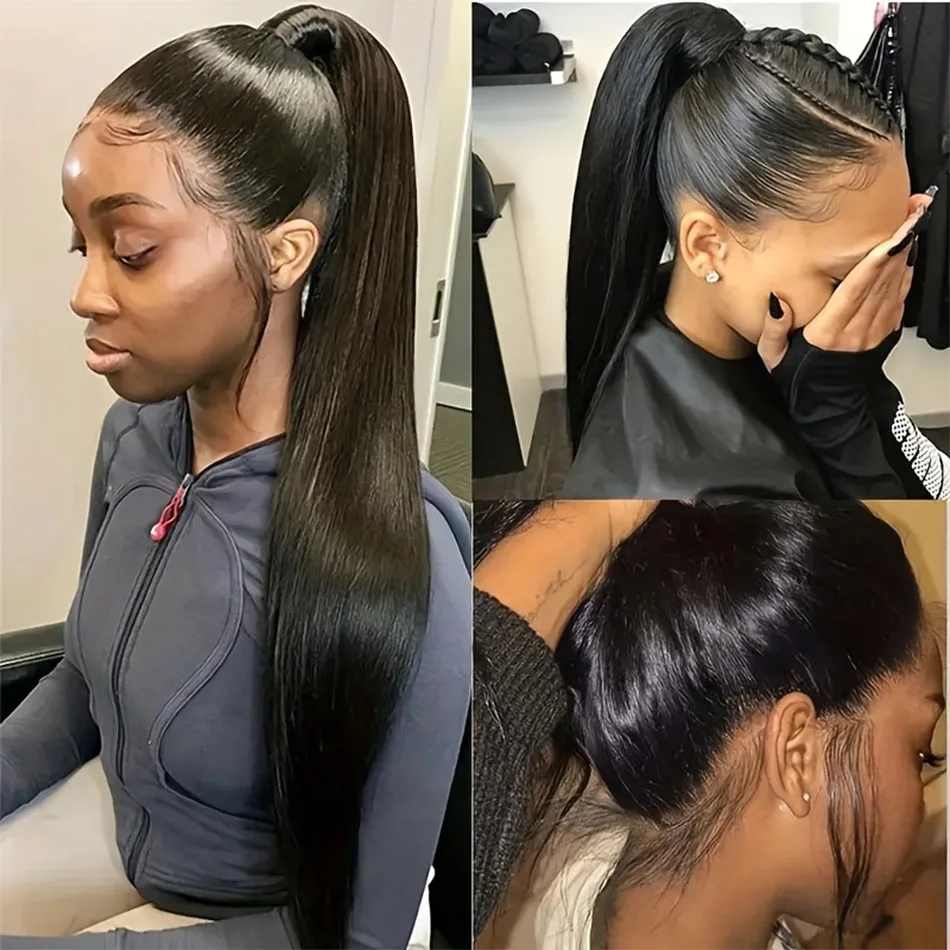 【Glueless Lace Front Wigs Human Hair Quality】:250% Density Straight Human Hair Wigs Full and Thick, True to Length and Weight, No Shedding&Tangle, No Smell,Straight Human Hair Wigs for Women Wet,Can Be Curled, Bleached or Styled As You Like,Natural Color, 18-40 Inches in Stock,Each Wig is 180-240g, Depending on The Hair Length & Humidity.
