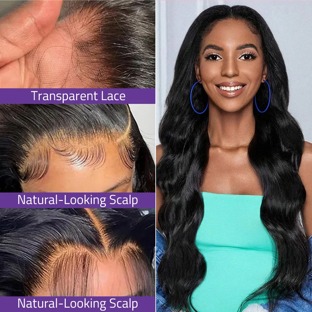 HD Transparent 13x4 13x6 Lace Body Wave Natural Black Wig Pre-Plucked 360...