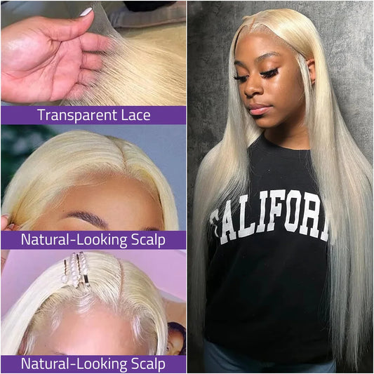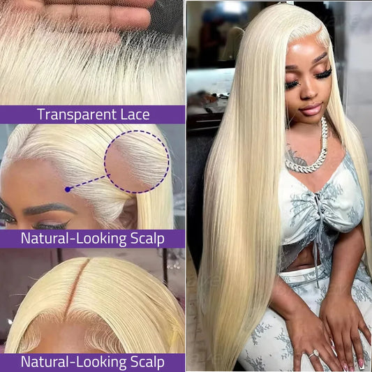 36 Inch Blonde Human Hair 13x6 Transparent Lace Frontal Wig #613 Bone Straight 100% Brazilian Hair Colored Wig For Women Choice.