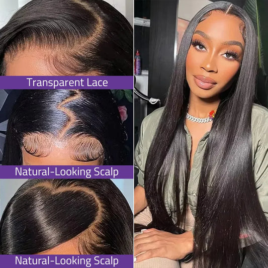 38 Inch 13x4 13x6 HD Transparent Straight Lace Front Wigs 200 Density 360 Full Lace Brazilian Natural Human Hair Wigs For Women