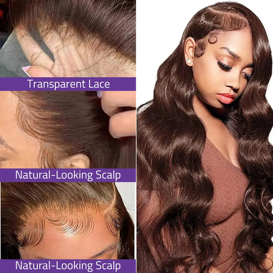 100% Human-Hair Wigs #4 Body Wave Wig Chocolate Brown Lace Wig 13x4 HD Lace Frontal Wig 13x6 Transparent Lace Pre plucked Wig !