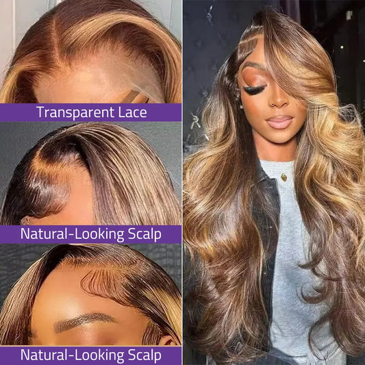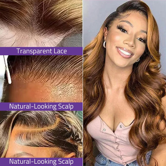 36 Inches Highlight Wigs Body Wave 13x4 HD Lace Front Wigs 100% Human Hair 4/27 Honey Blonde Colored Lace Frontal Wig For Women.