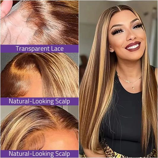 P4/27 Colored Preplucked Wigs 200 Density Straight Brazilian Human Hair Wigs 13x6 HD Transparent Lace Frontal Wigs For Women