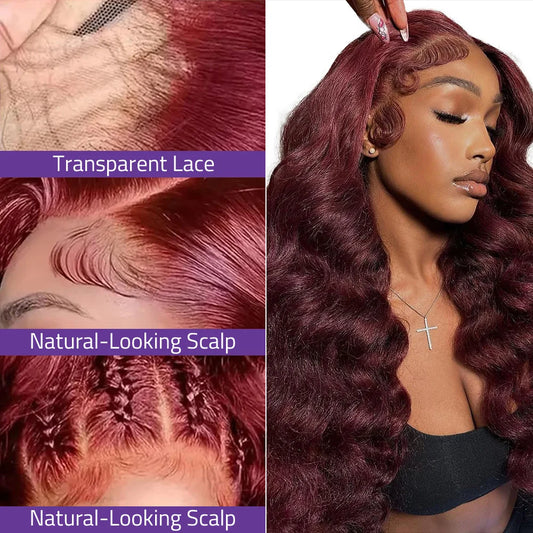 200 Density Body Wave Wig Burgundy #99J Lace Front Wig 13x4 13x6 HD Lace Frontal Wig Human Hair Pre Plucked Colored Wig Can Dyed