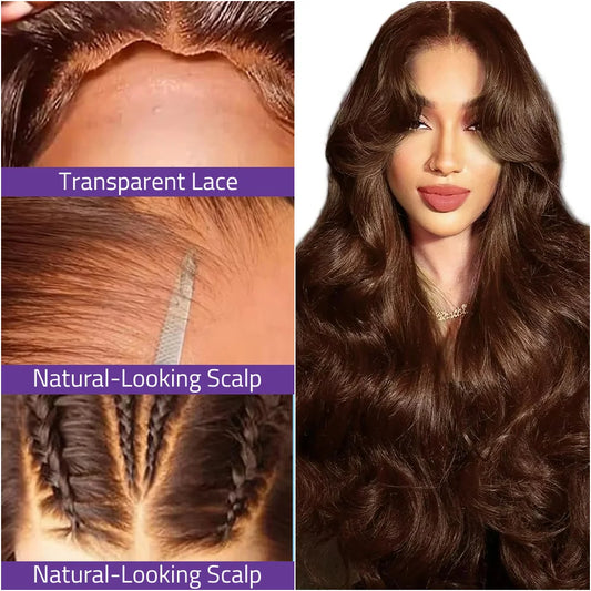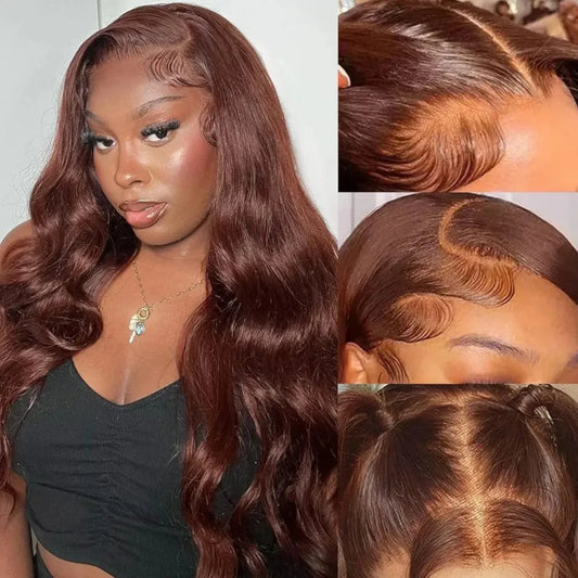 Body Wave Chocolate Brown 13x4 Lace Front Wigs 13x6 HD Lace 100% Human Hair Wigs For Women,Pre-plucked #4 Colored Wigs On Sale.