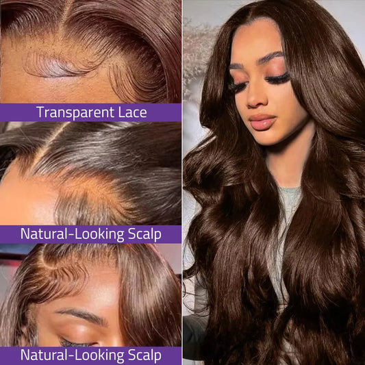 Chocolate Brown PrePlucked Body Wave Human Hair Lace Wig 13x6 Transparent Lace Front #4 Brown Wig 13x4 HD Front Lace Colored Wig