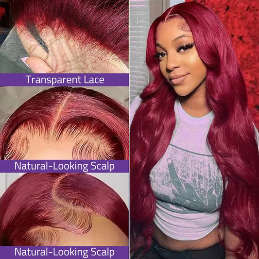 100% Human Hair Wigs 99J Body Wave wigs 13x4 13x6 HD Lace Frontal Wigs 200 Density Transparent Lace Wigs Suit Any Color Skin .