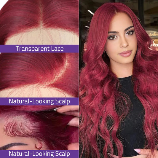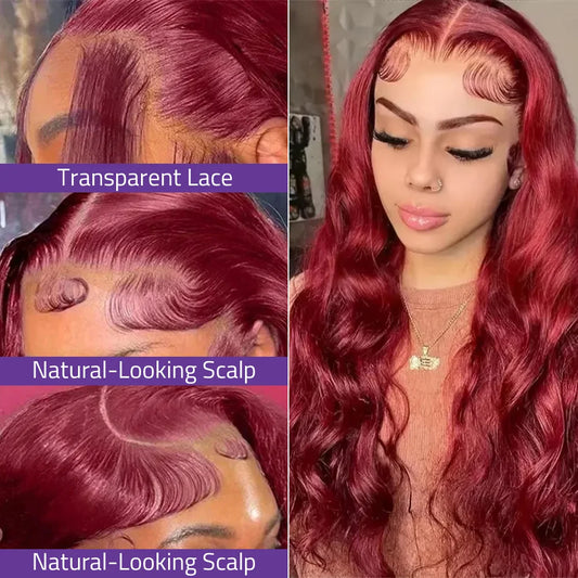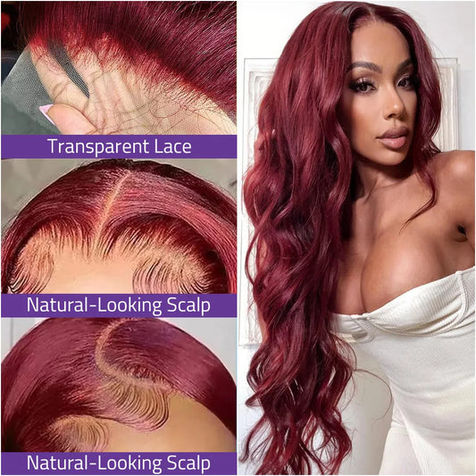 #99j Burgundy Body Wave 100% Human Hair Wig with 13x6 HD Lace Frontal and 13x4 Transparent Lace Front Wig,Great value on sale.