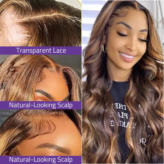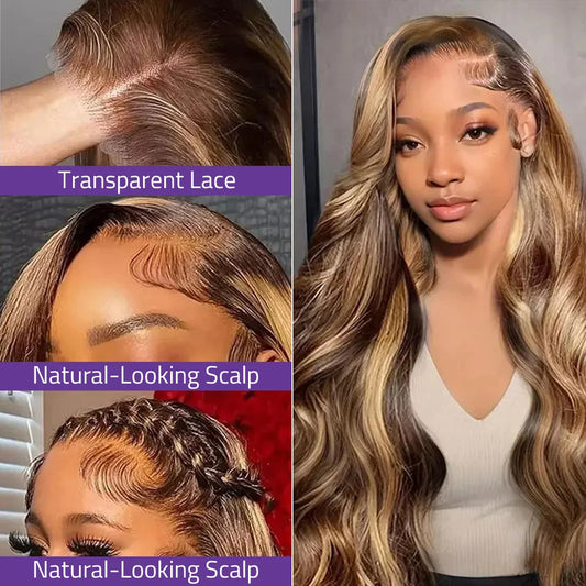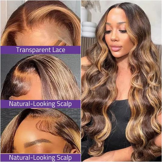 4/27 Highlight Body Wave Wig 36 Inch Brazilian Human Hair Lace Wig 13x6 Hd Transparent Lace Front Wig 200 Density For Women .