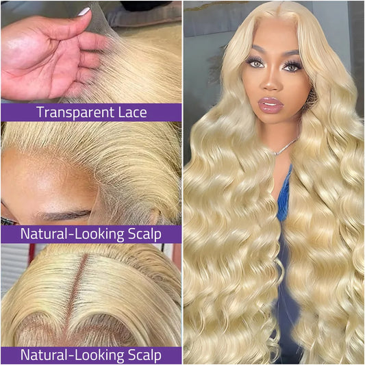 #613 Honey Blonde Body Wave Lace Wig 13x6 HD Lace Frontal 100% Human Hair Wig 40 Inch Colored LacePre-plucked Hair Wig For Women