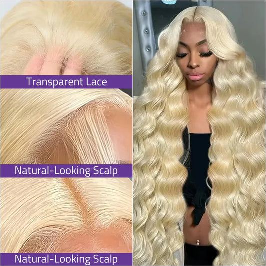 13x6 Transparent Frontal Lace 40 Inch Wig 613 Blonde Body Wave Color Wig 13x4 HD Front Lace Human Hair Wig 200 Density For Women