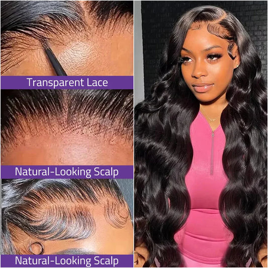 220 Density Black Body Wave Lace Wigs 13x4 and 13x6 HD Lace 40 Inch Wig 5x5 Gluless Transparent Lace Pre-plucked Human Hair Wigs