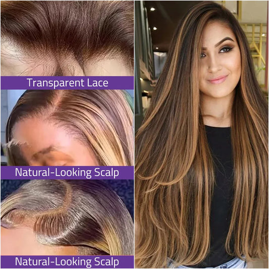 P4/27 Highlight Bone Straight Lace Front Wig 200% Density 13x4 and 13x6 Transparent HD Lace Front 100% Human Hair Wigs For Woman