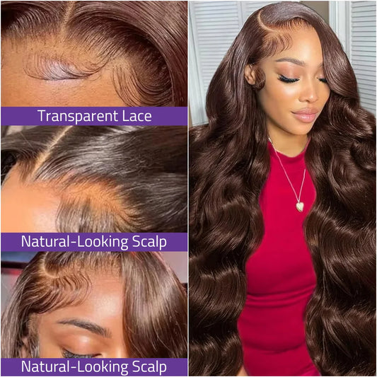 13x6 Chocolate Brown Color Front Lace Wig 40 Inch Body Wave Lace Frontal Wigs 100% Pre-plucked Human Hair 13x4 HD Front Lace Wig