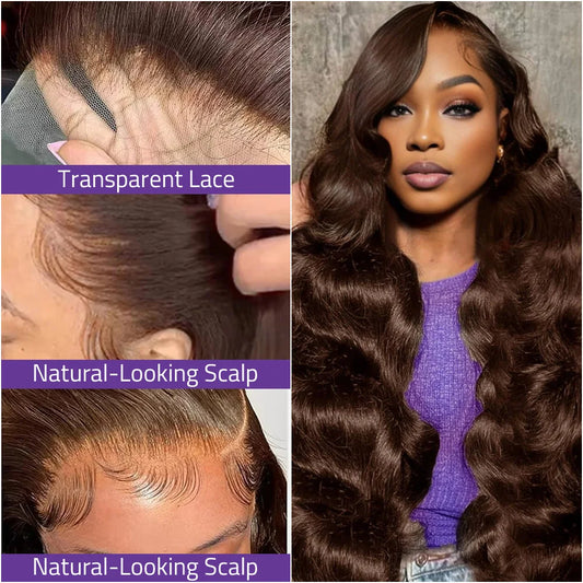 Chocolate Brown Front Lace Wig 13x6 Transparent Lace Front Wig Body Wave Colored 100% Human Hair Wig 220 Density 13x4 Lace Wigs