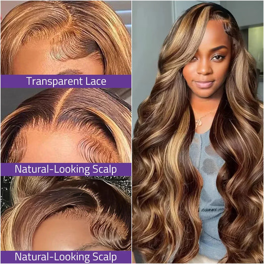 40 Inch P4/27 Body Wave Lace Front Wig Human Hair For Women 13X4 HD Lace Honey Blonde Wig 200% Density 13x6 Transparent Lace Wig