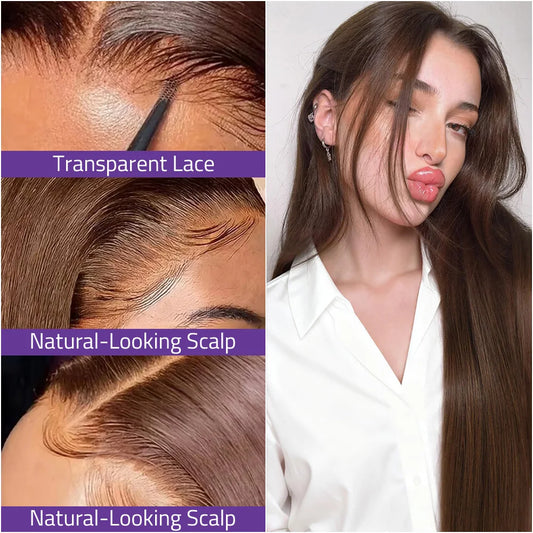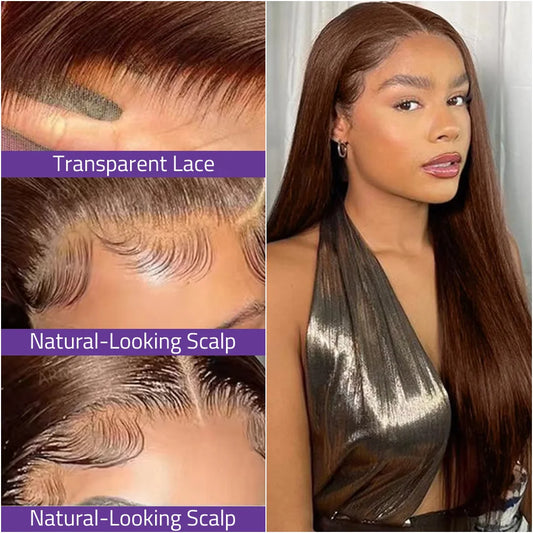 Chocolate Brown Bone Straight Front Lace Wig 13x6 Transparent Lace Frontal Wig 13x4 HD Lace Pre-Plucked Brazilian Human Hair Wig