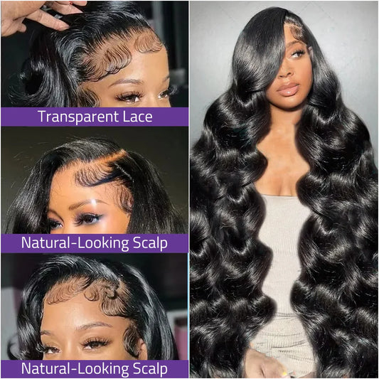 Body Wave Brazilian Human Hair Wigs 13x4 and 13x6 Transparent Lace 40 Inch Wigs 360 HD Full Lace Natural Color Wigs 200% Density
